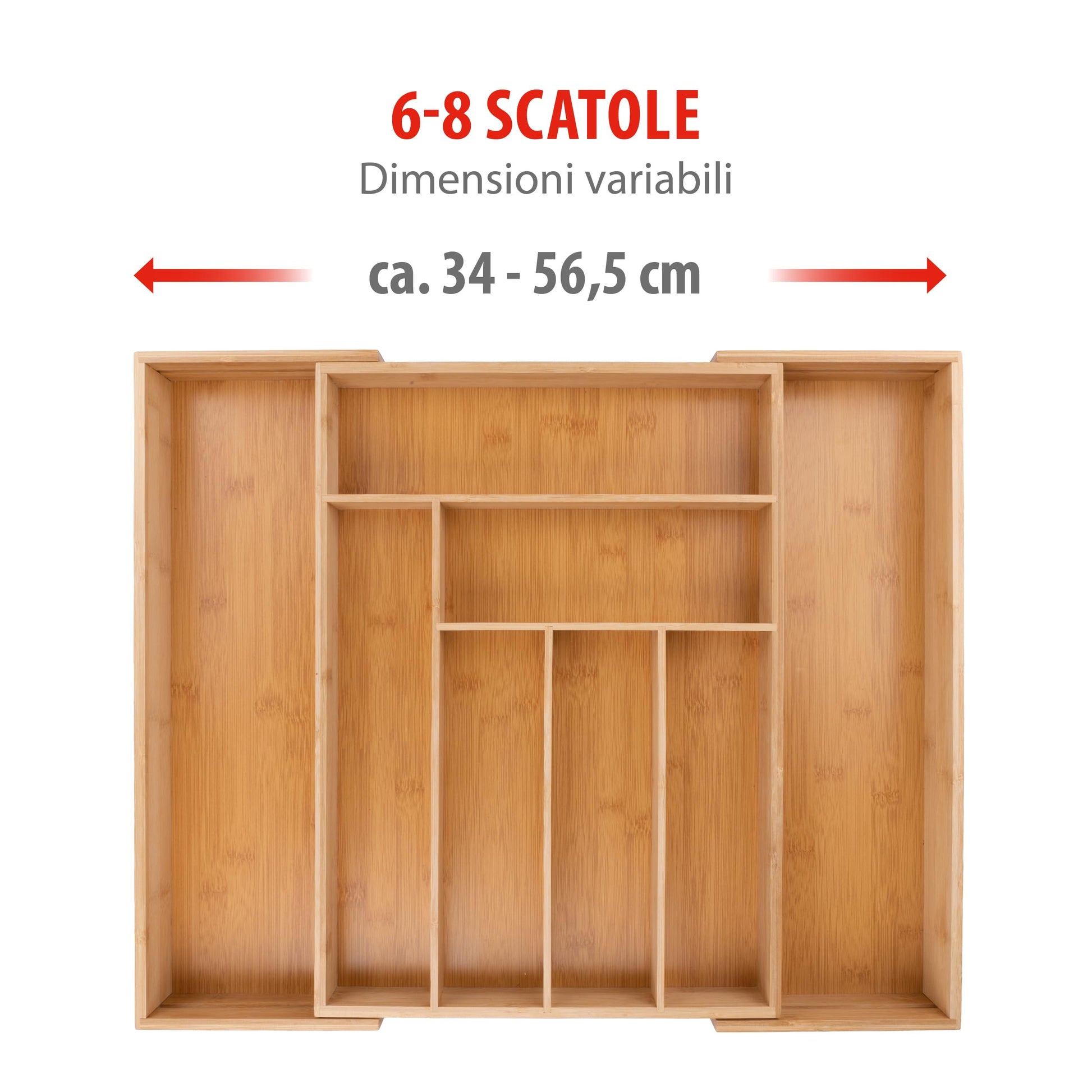 alpina Drawer Cutlery Tray - Expandable Kitchen Drawer Organizer 46 x 34-56.5 x 6 cm - Drawer Organizer with 6 to 8 Compartments - For Kitchen Utensils, Sunglasses and More - Bamboo