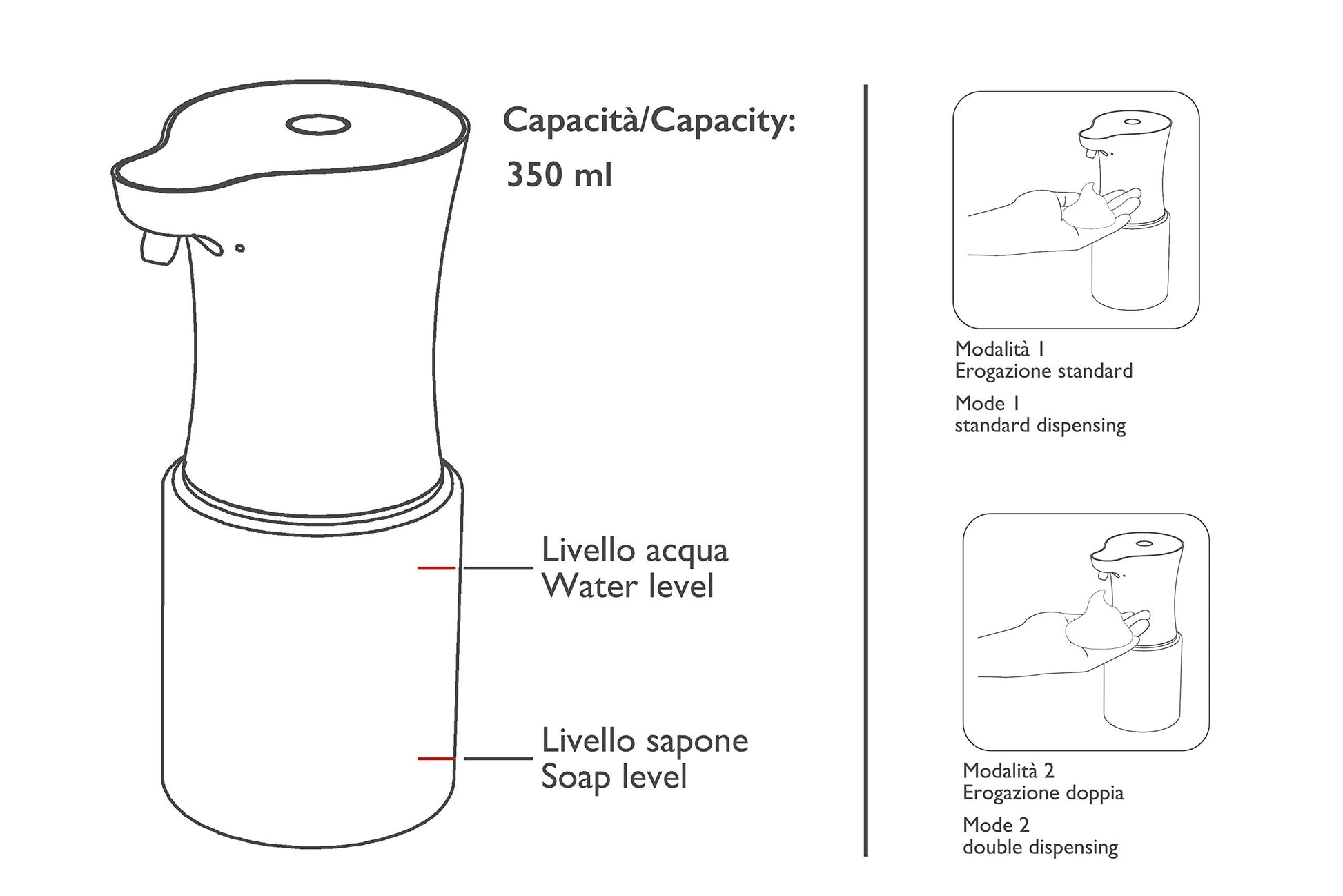 - Keep it next to the sink in the kitchen, or in the bathroom: once turned on, just place your hand under the nozzle to receive the right amount of soft mousse.