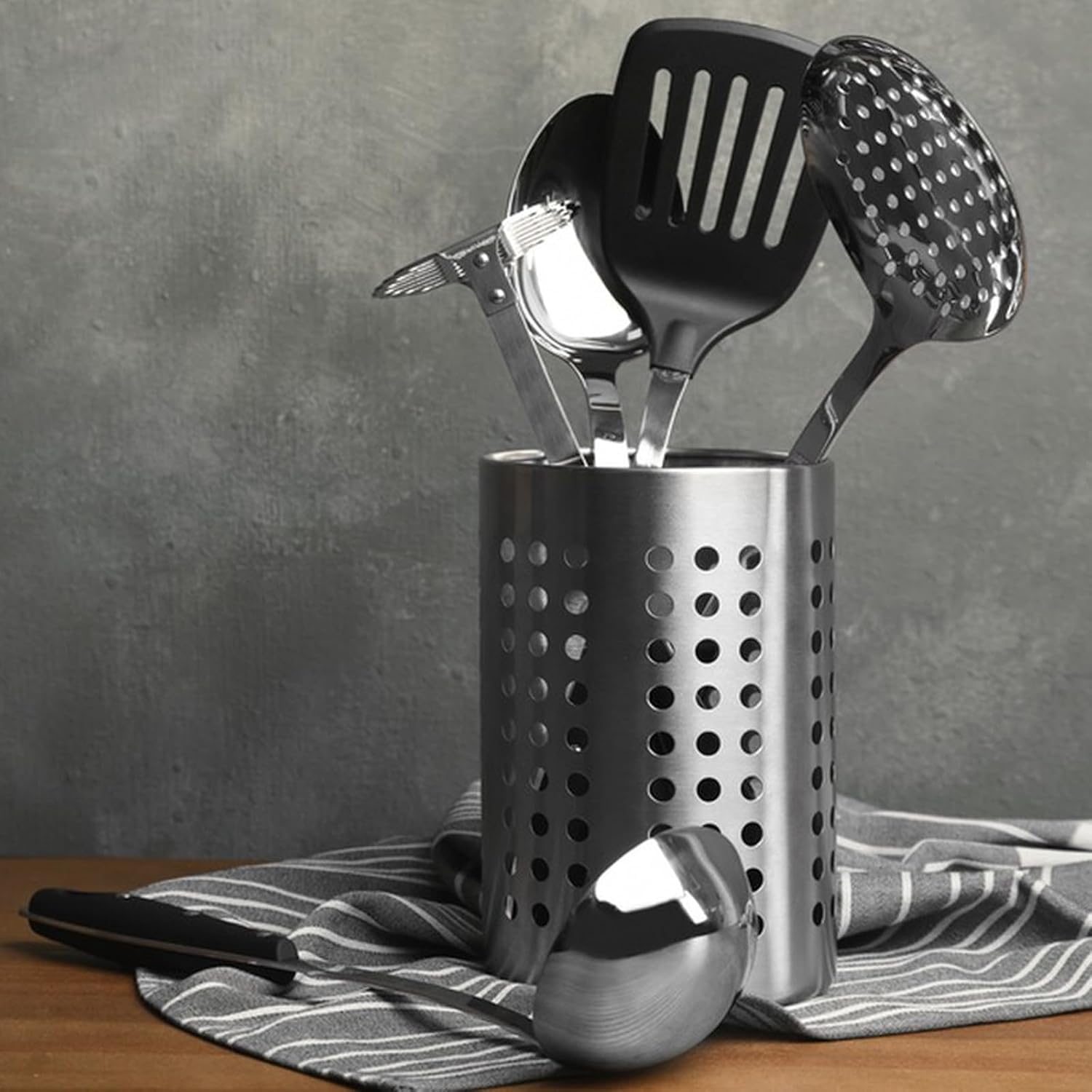 - FUNCTIONAL DESIGN: Sturdy and durable silver metal construction, perfect for keeping all your kitchen utensils organized on the countertop.