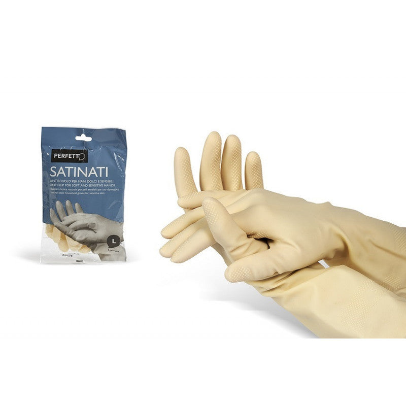 I nostri guanti in puro lattice naturale satinati sono la scelta ideale per chi ha pelli sensibili e cerca protezione durante le pulizie domestiche.
