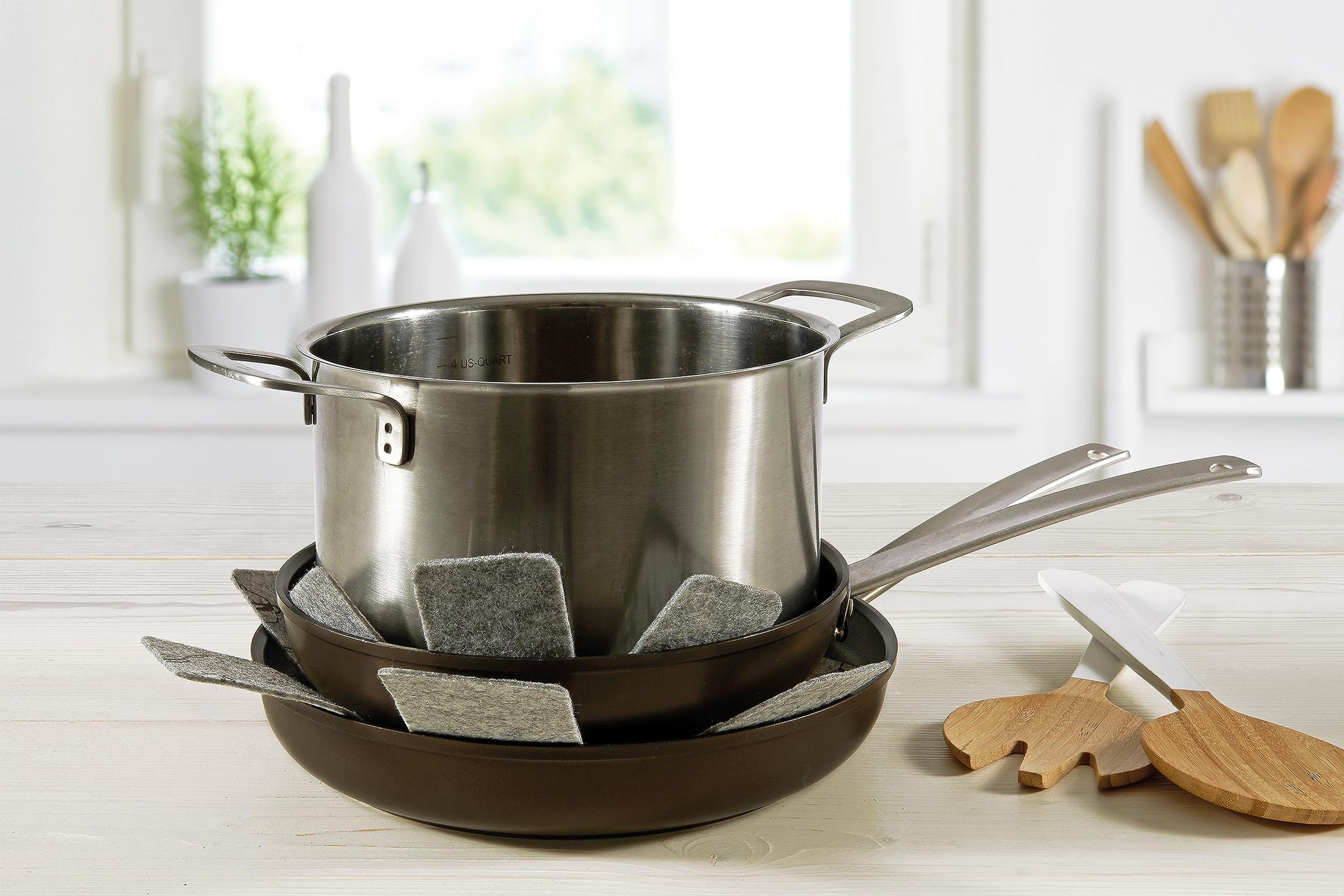 - Felt divider perfect for separating pans and pots without scratching.