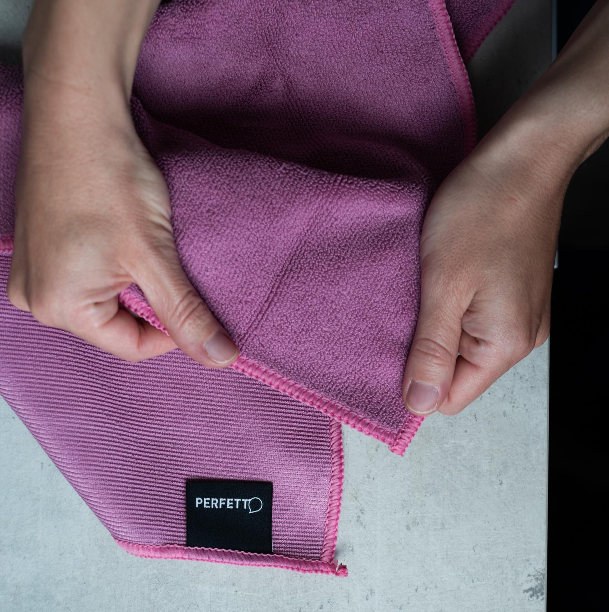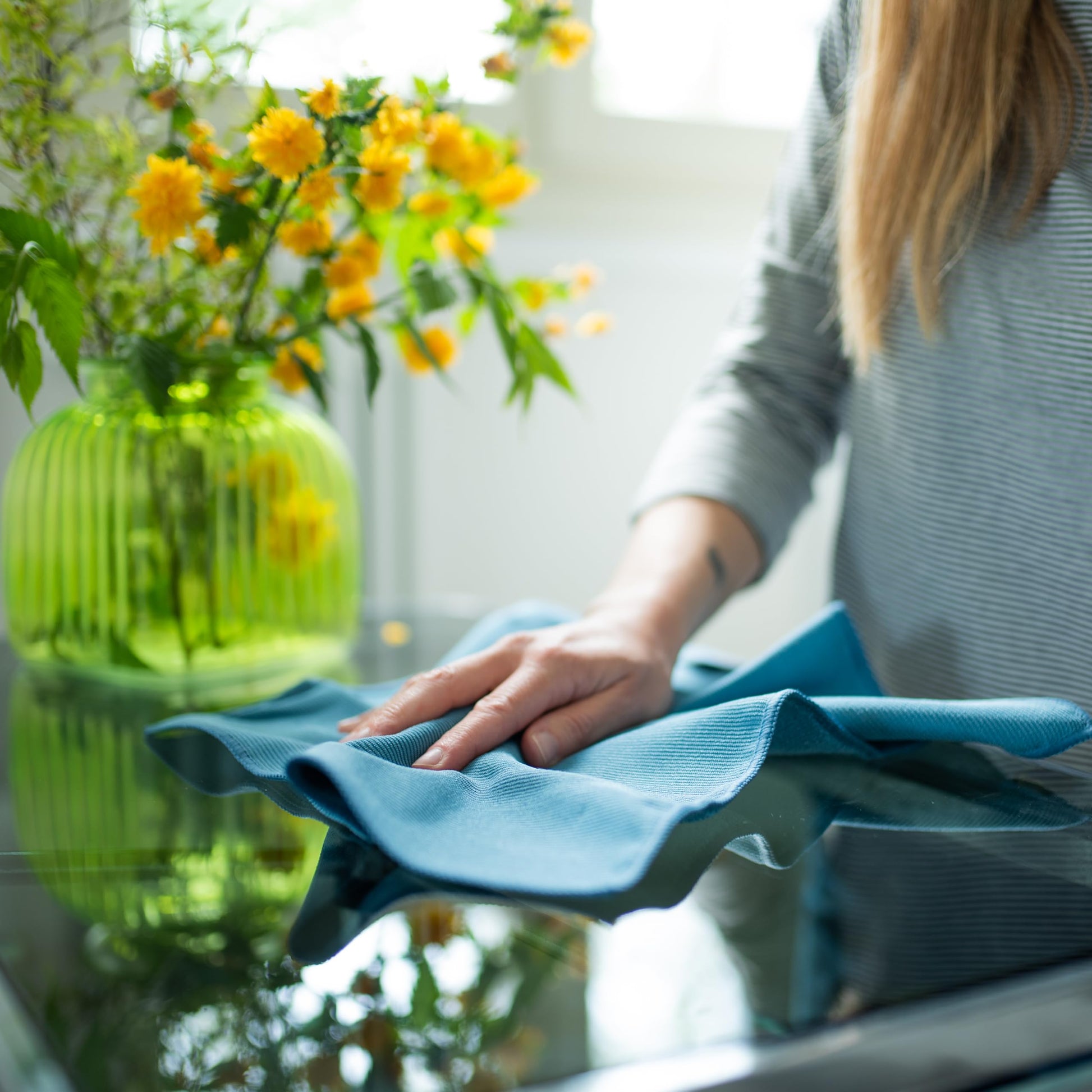 - Double-sided microfibre cloth Ideal for cleaning glass without leaving traces.