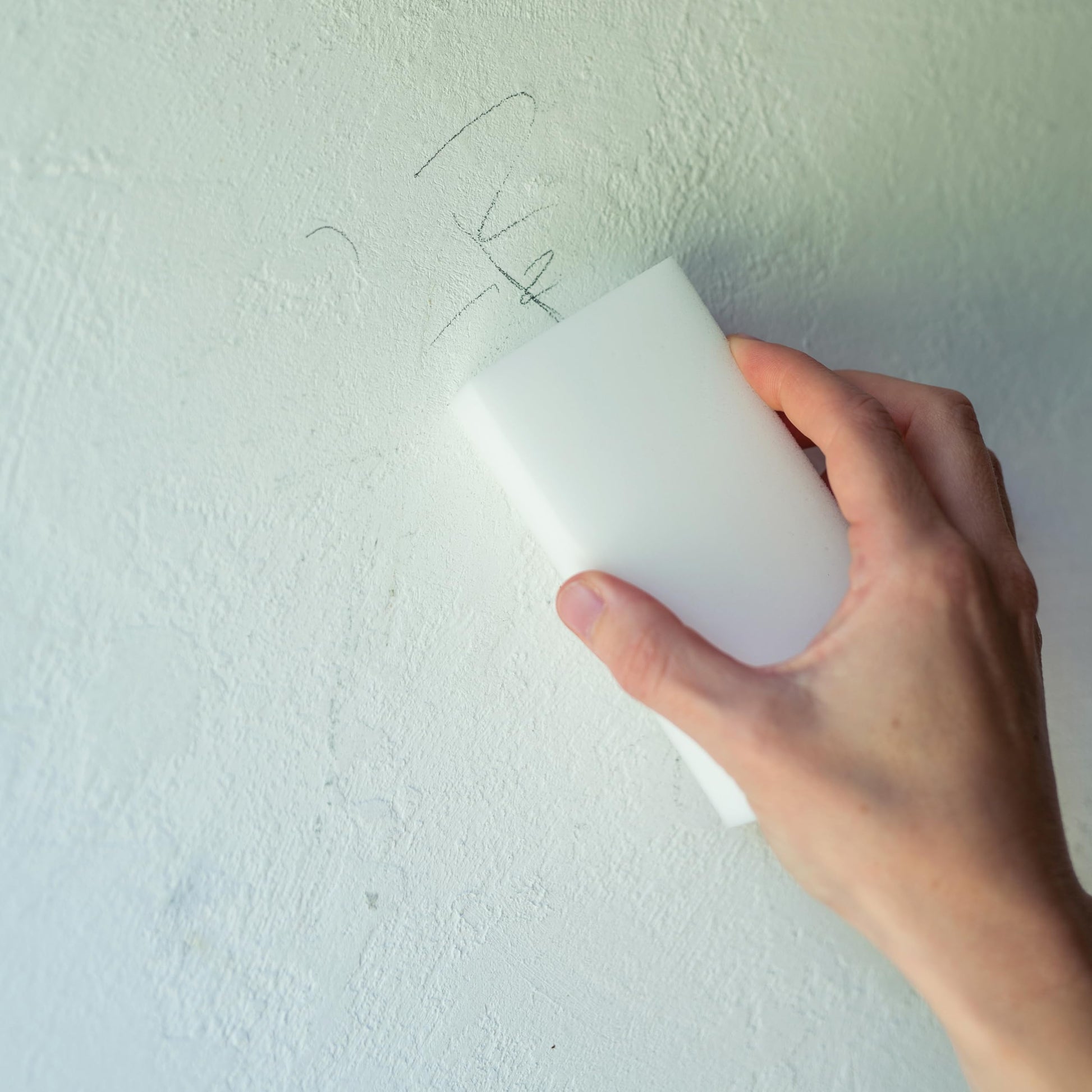 - Whitemagic sponges are ideal for removing pencil, marker, ballpoint pen, and crayon marks from any type of wall; they're also suitable for household surfaces such as wood, glass, kitchen counters, tiles, etc.