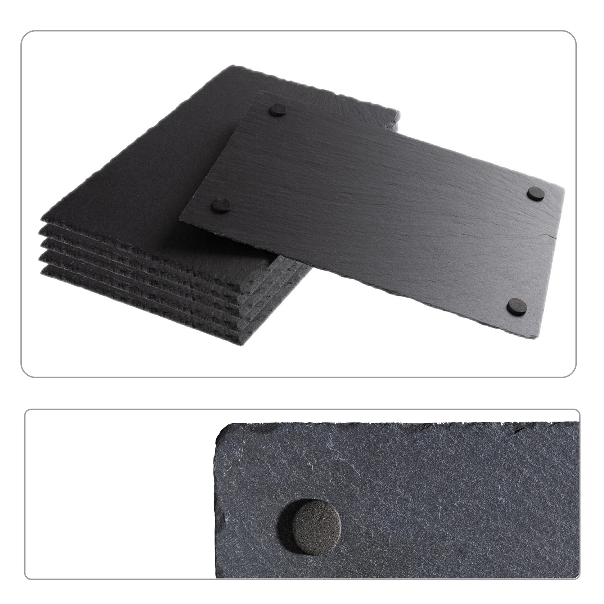 - Slate dinnerware set for 6 with 4 non-slip feet per plate + 8 free extras. Slate serving platters, each long and narrow rectangular tray.