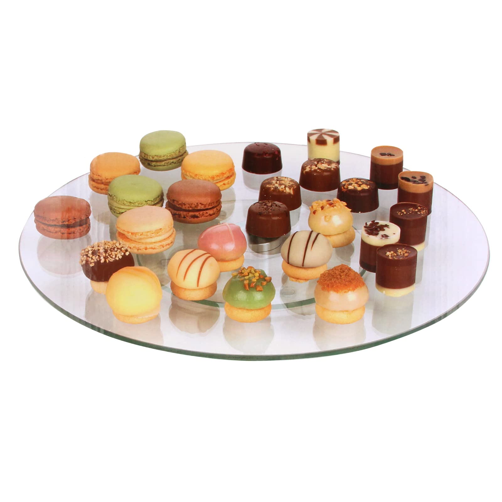 - Piatto girevole in vetro: una collezione di prelibatezze o piatti; questo piatto susan pigro porterà le tue prestazioni al livello successivo! Che tu stia servendo formaggio, cracker, frutta, olive, crostate o dolci, questo giradischi offre una presentazione accessibile che stupirà i tuoi ospiti!