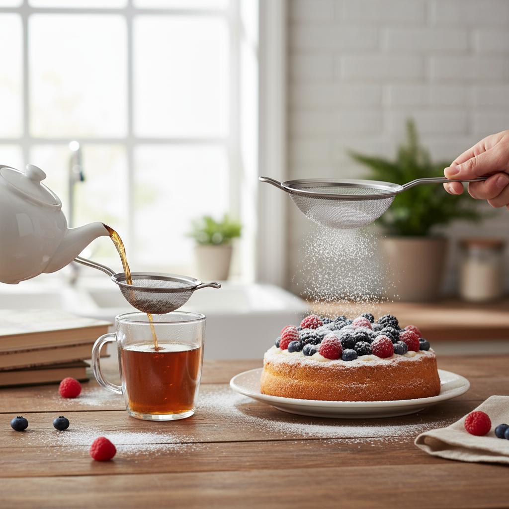 Il Set 2 Colini Alpina in Acciaio Inox è l'accessorio indispensabile per ogni cucina. Questo set include due colini di dimensioni diverse, perfetti per setacciare farina, zucchero a velo, cacao in polvere e decorare dolci con risultati professionali.