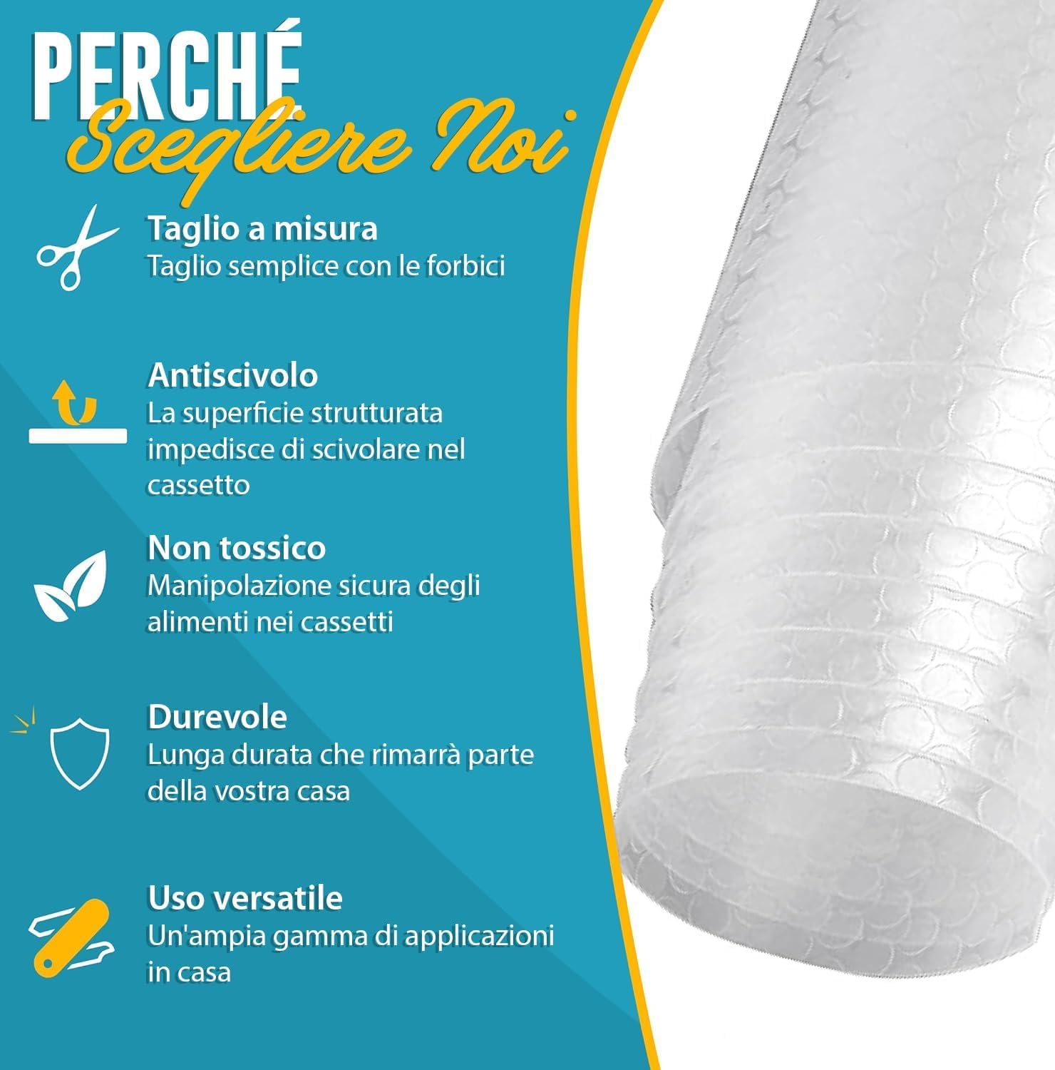Ideale per cassetti cucina, armadi, credenze, frigorifero, dispensa, bagno, ufficio, cassettiere. Perfetto per proteggere ripiani da posate, piatti, bicchieri, cosmetici, utensili e qualsiasi oggetto.