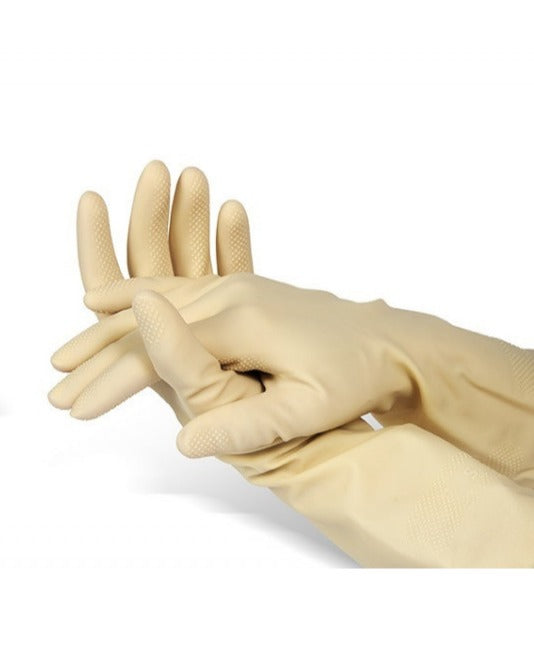 I nostri guanti in puro lattice naturale satinati sono la scelta ideale per chi ha pelli sensibili e cerca protezione durante le pulizie domestiche.
