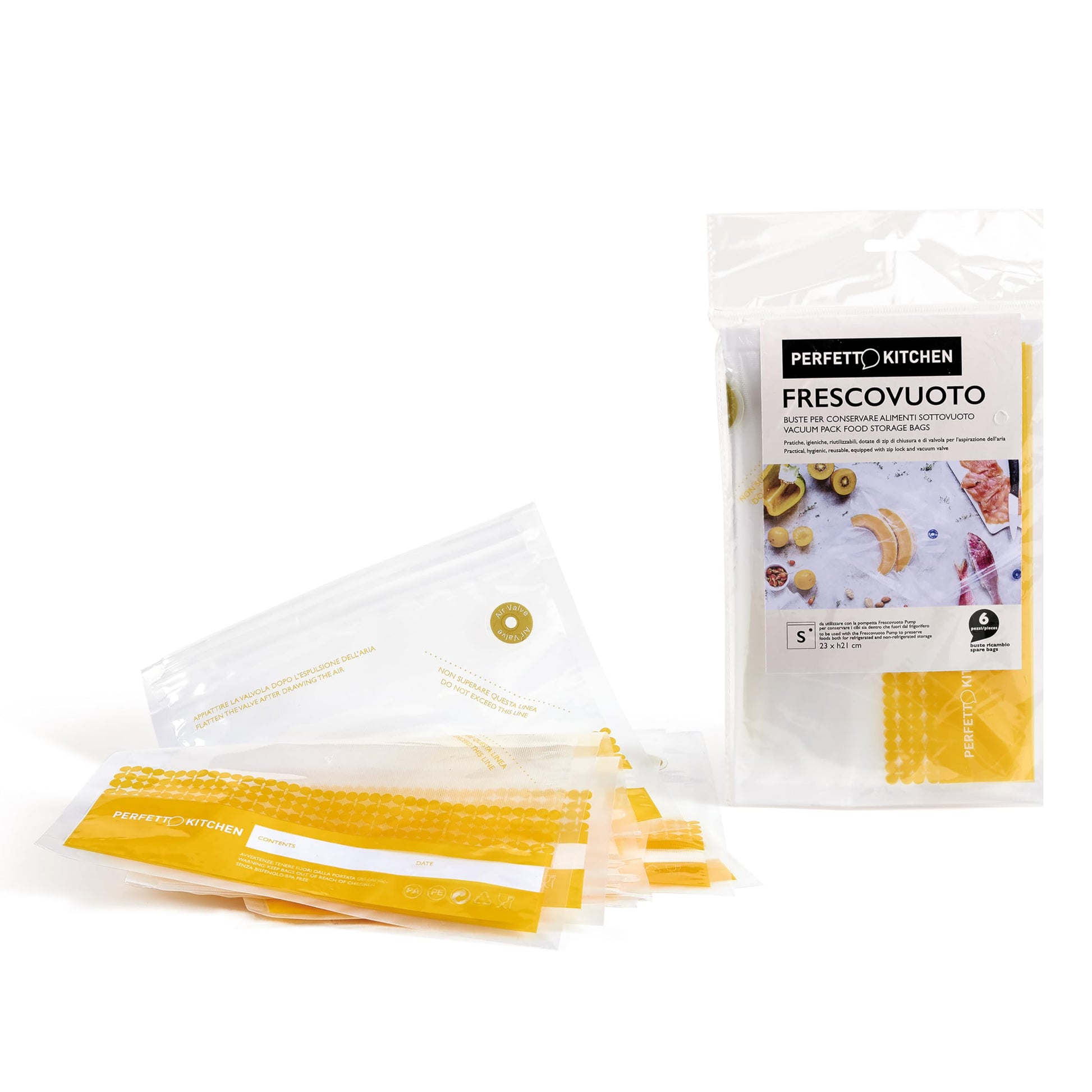 Buste Sottovuoto Frescovuoto S - 6 Pezzi Riutilizzabili 23x21cm per Conservazione Alimenti