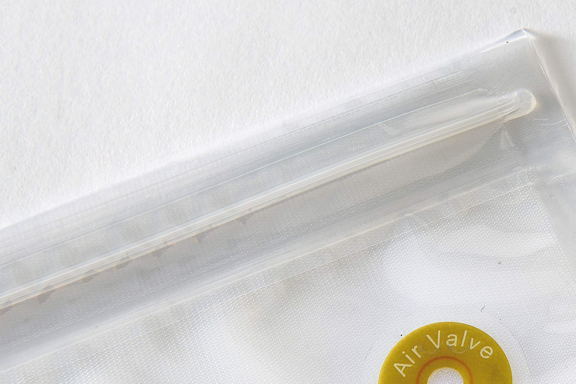 Inserisci l'alimento nella busta e richiudi accuratamente. Posiziona il beccuccio della pompetta Frescovuoto al centro della valvola e aspira fino a rimuovere tutta l'aria. Togli la pompetta e premi con il dito in senso orario sulla valvola per sigillare.