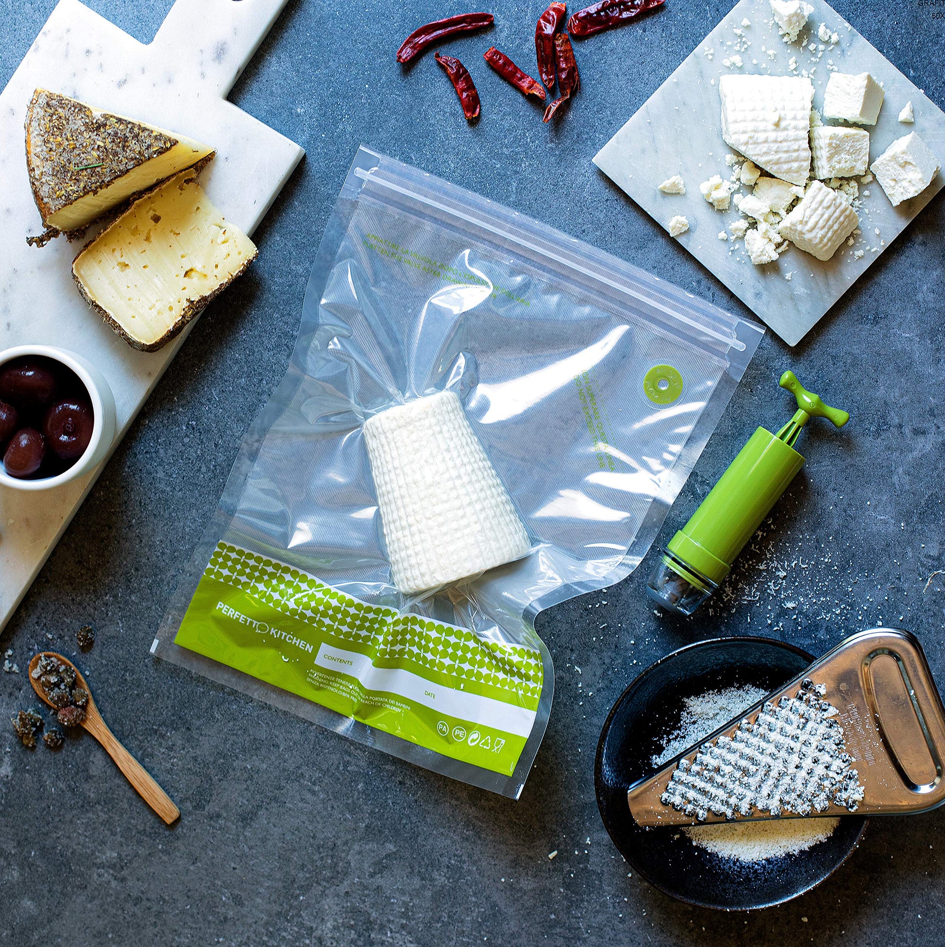 Le buste Frescovuoto formato L sono la soluzione versatile per conservare carne, pesce, formaggi, verdure e frutta mantenendo intatti sapore, freschezza e proprietà nutritive.