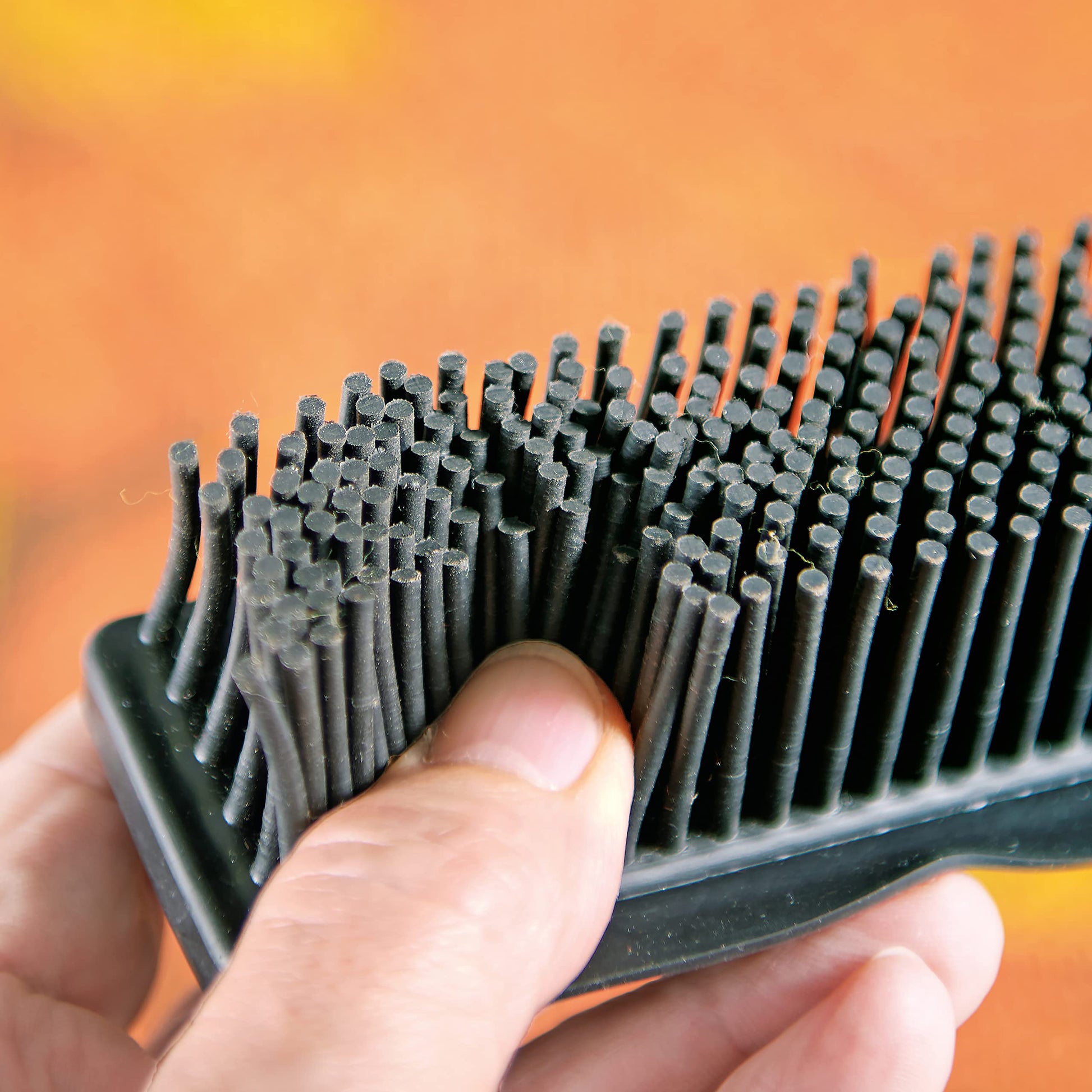 - Le setole sono in gomma TPR: un materiale morbido, pratico e resistente che non si deforma facilmente.