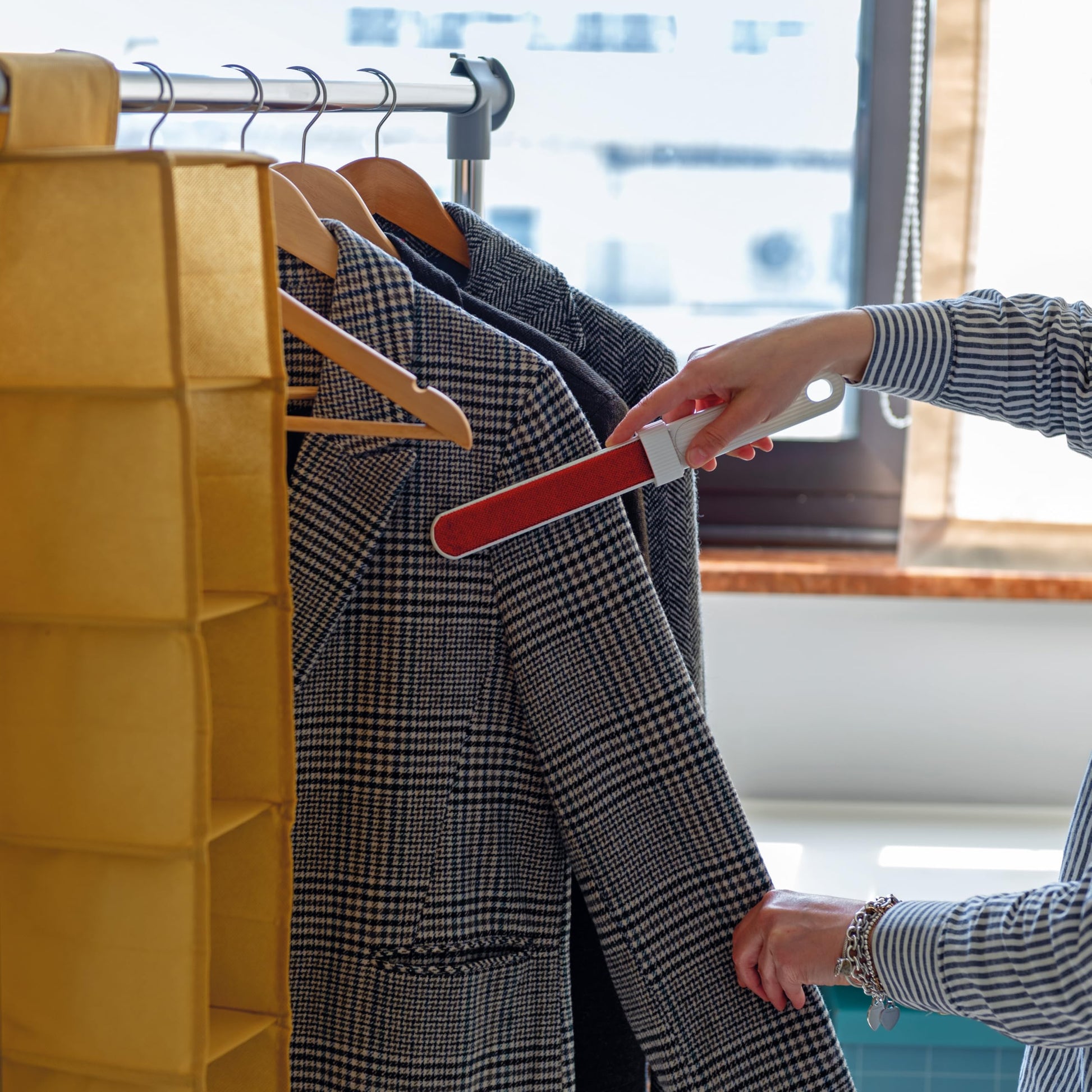 - Rimuove velocemente peli, pelucchi, capelli dai tessuti.