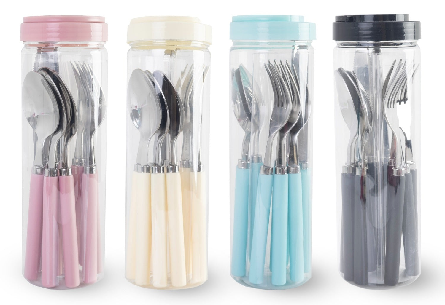 Set 16 Posate da Tavola Colorate con Barattolo - 4 Persone