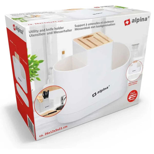 - Quando si cucina, è bello tenere i coltelli e altri utensili da cucina ordinati. Questo organizer da cucina Alpina è un modo elegante per conservare tutti i tuoi utensili da cucina.