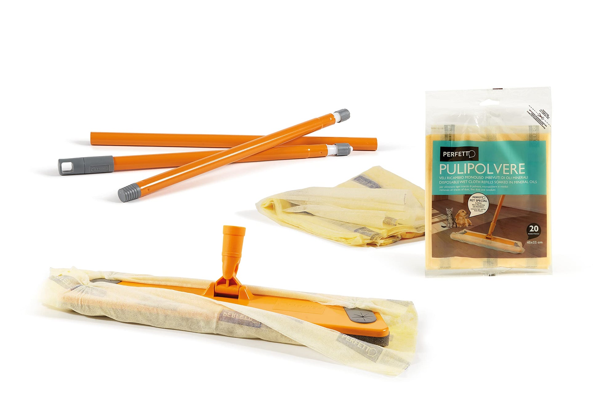Dimentica la polvere che si solleva e si disperde nell'aria. Il Pulipolvere Perfetto cattura e trattiene ogni traccia di sporco, polvere, peli e capelli grazie alle innovative retine imbevute di oli minerali 100% biodegradabili. Pulisci, lucida e proteggi tutti i tuoi pavimenti in un solo gesto.