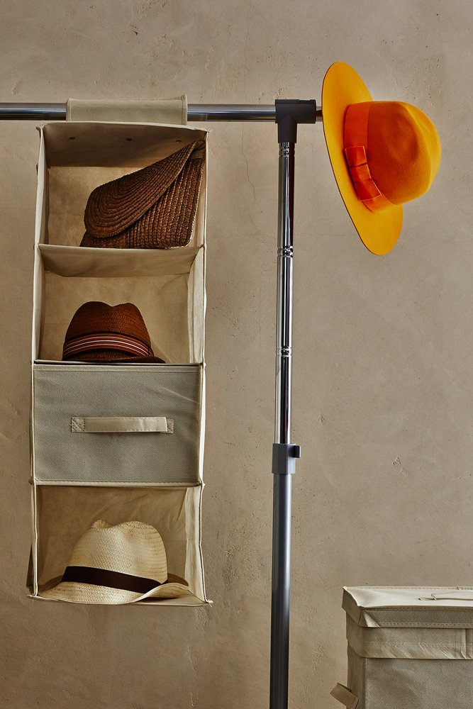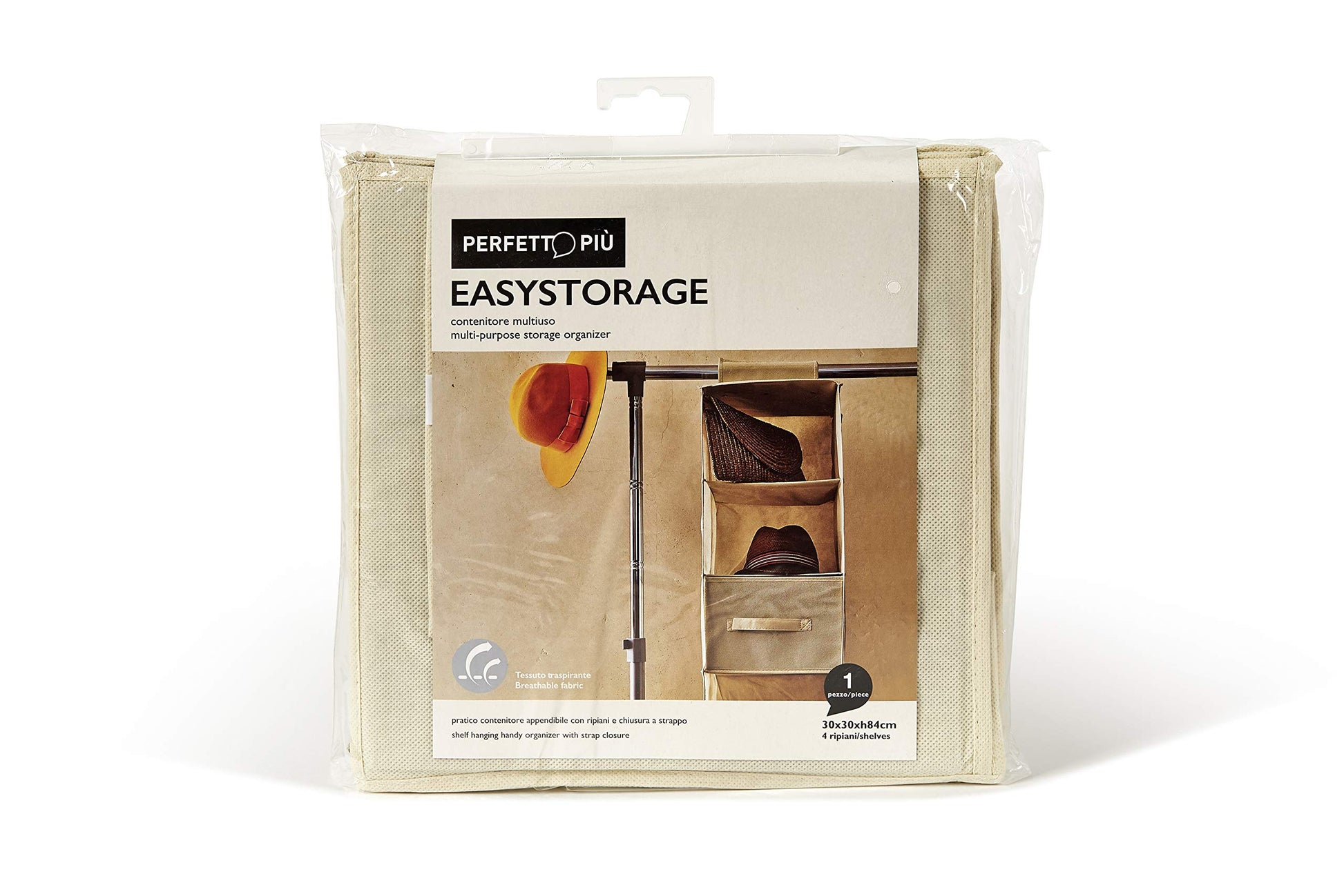Contenitore Verticale Tnt 4 Ripiani, Tessuto, Ecru, 30.0x30.0x84.0 Cm