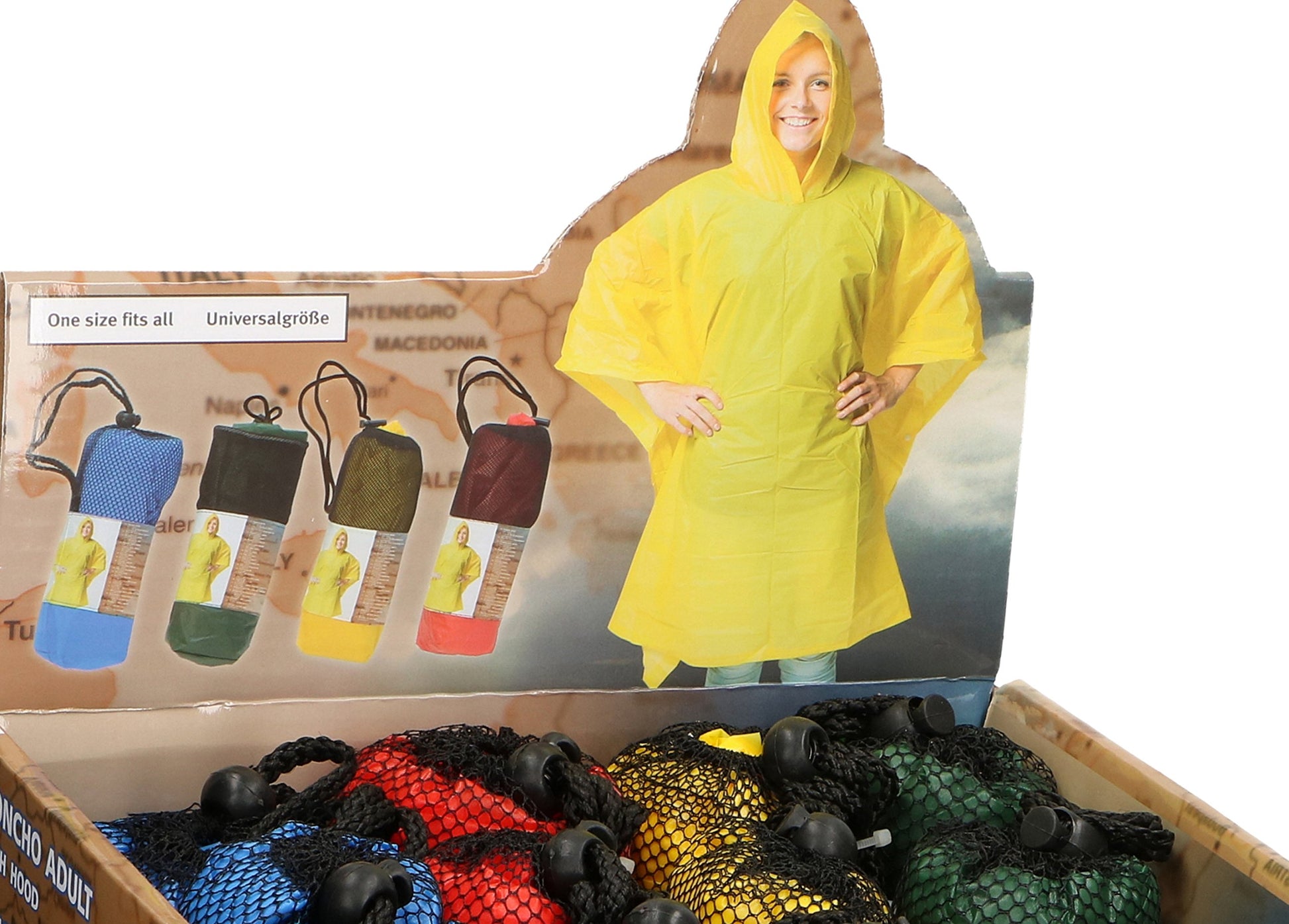 Poncho impermeabile blu Universal, dimensioni 100 x 130 cm 4 colori giallo rosso verde blu materiale PE