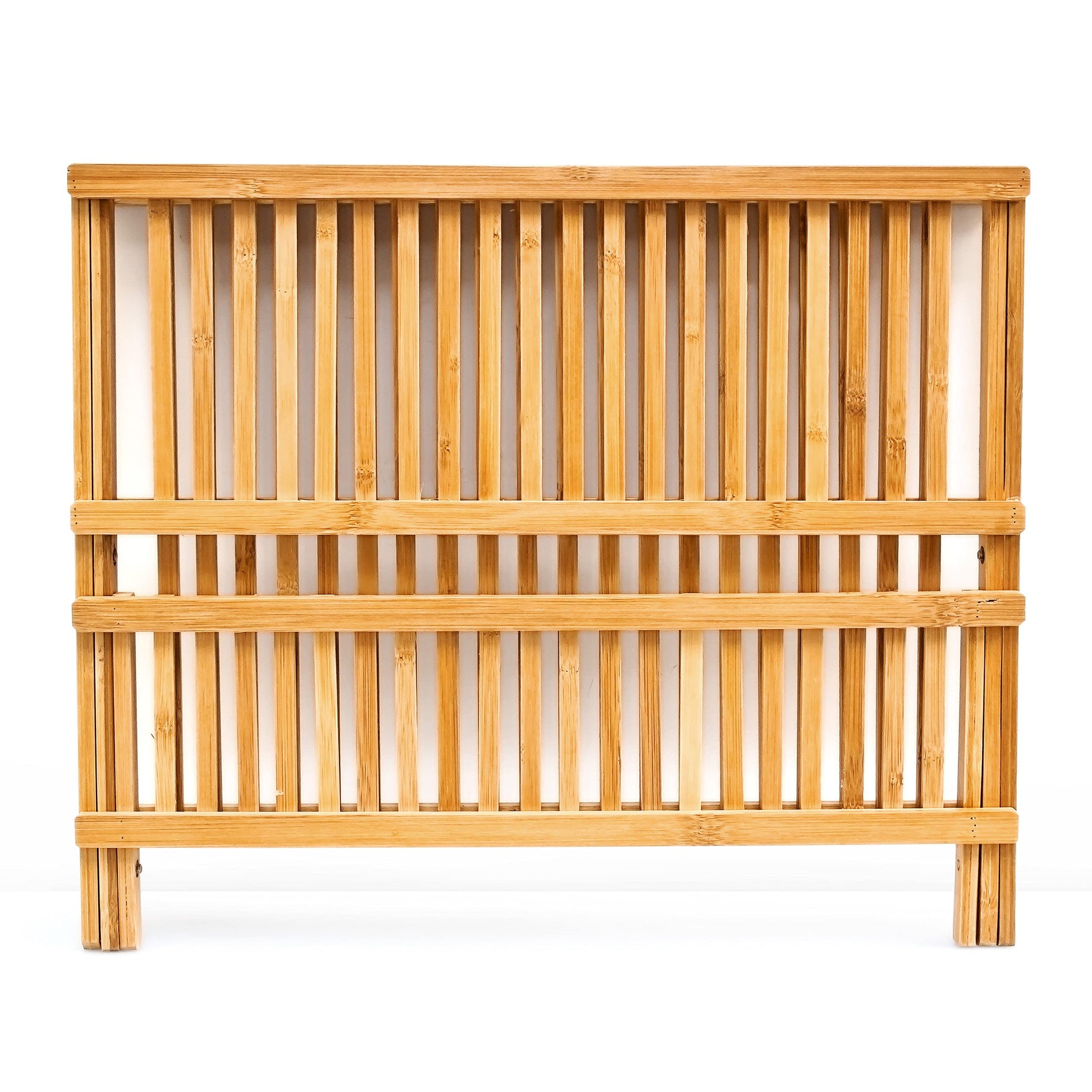 Relaxdays, mensola scolapiatti in bambù, a due livelli, pieghevole