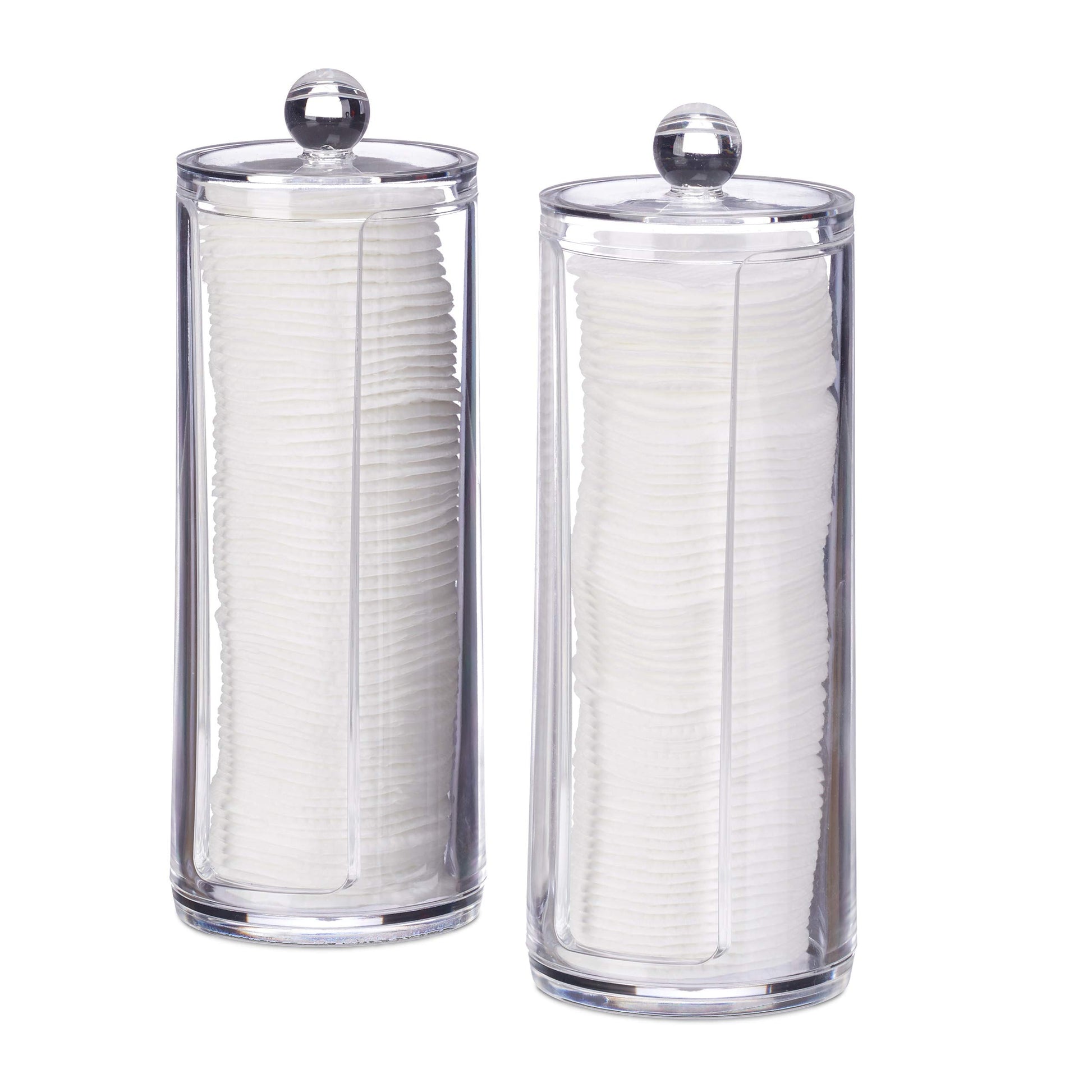 Set da 2 Dispenser per Dischetti di Cotone, Acrilico, Cilindrico, con Coperchio, Bagno, 20x7cm, Vari Colori