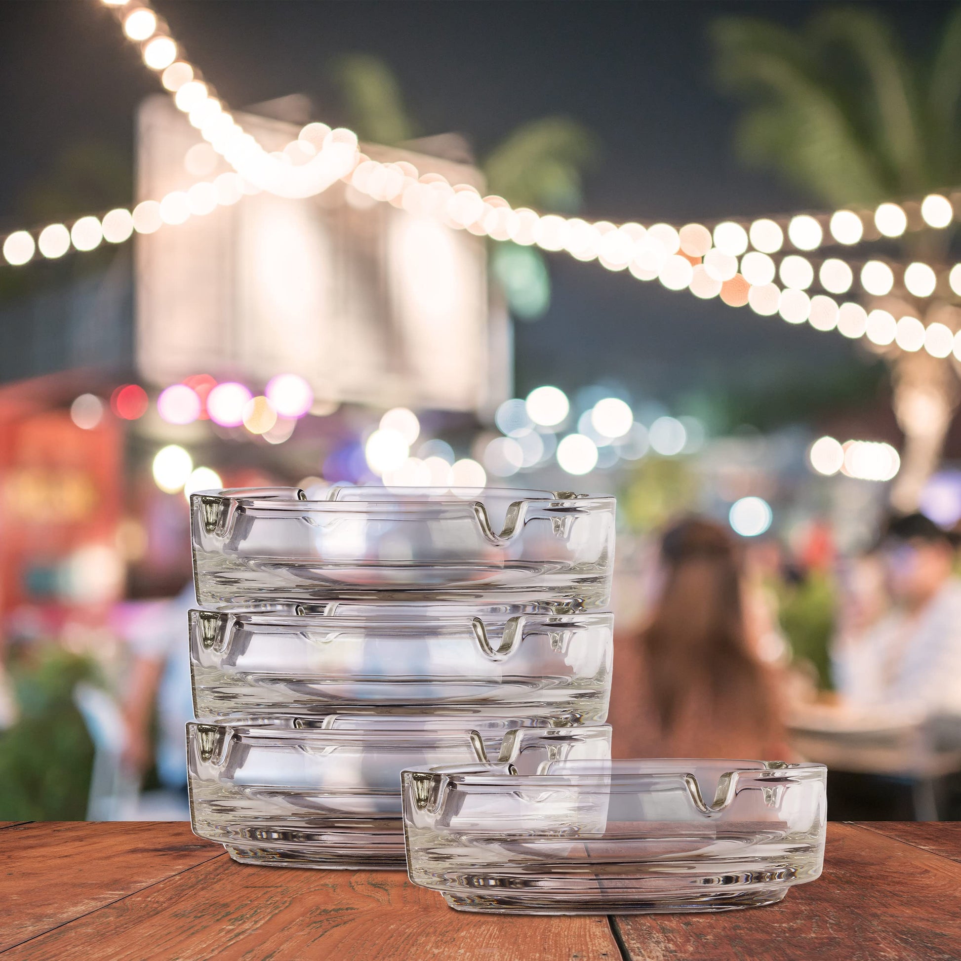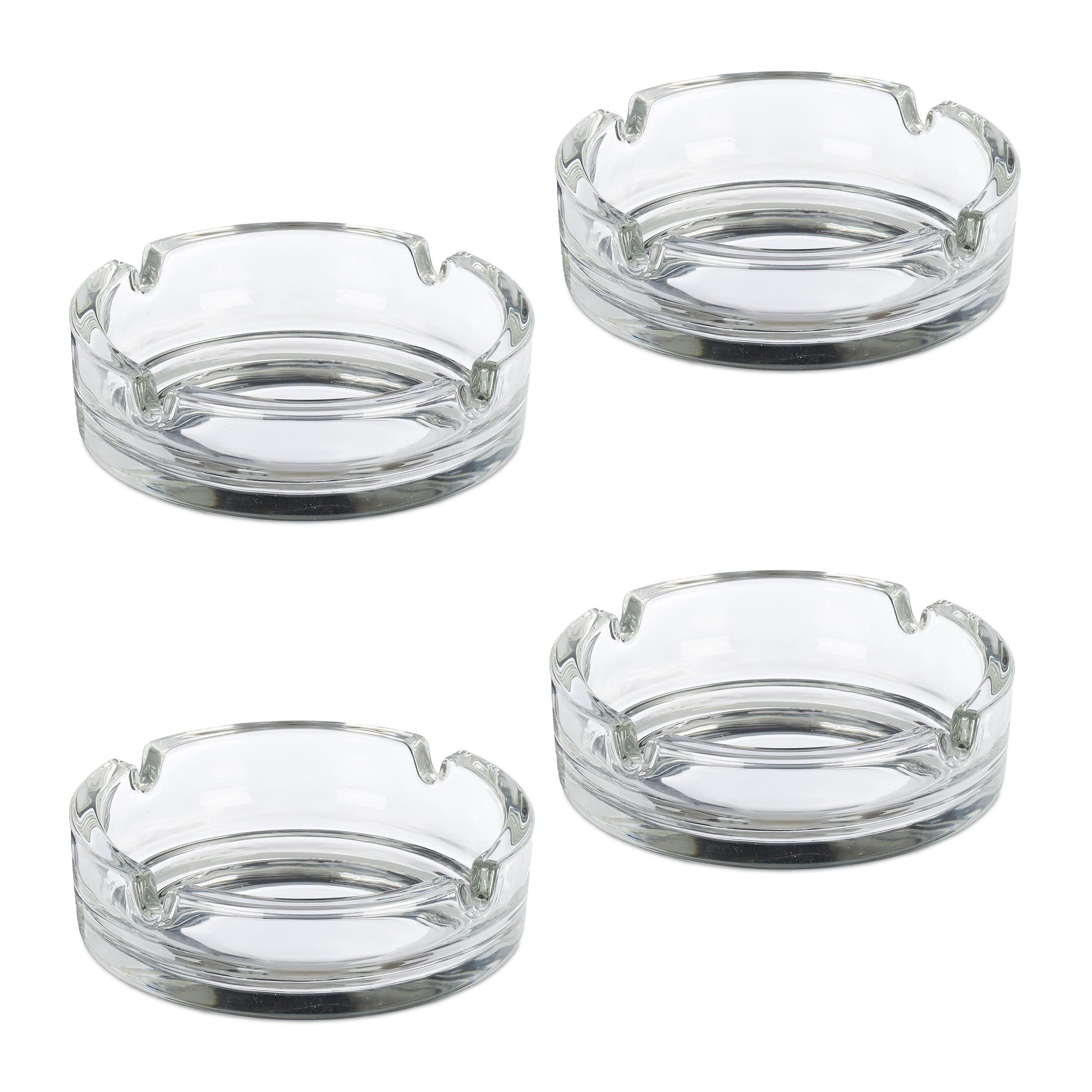 Set da 4 Posacenere in Vetro, Porta Cenere per Casa e Bar, Supporto per Sigarette, HxD: 3,5x11 cm, Trasparente